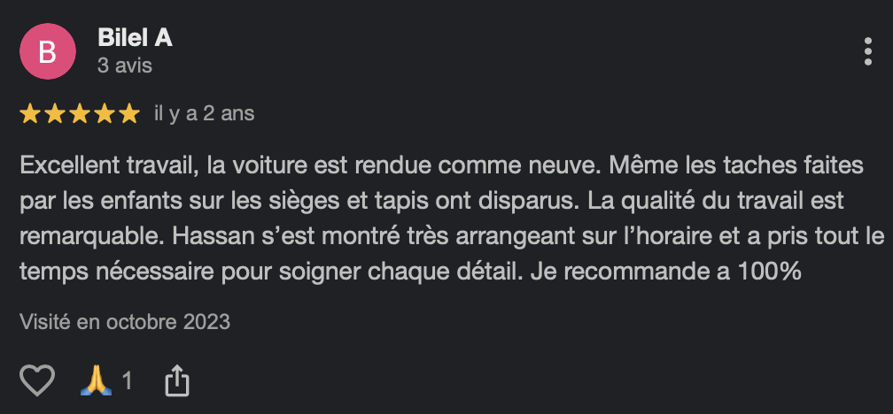 Chaque véhicule est traité avec soin et précision. Nous ne laissons aucun détail au hasard pour un résultat impeccable, comme neuf.